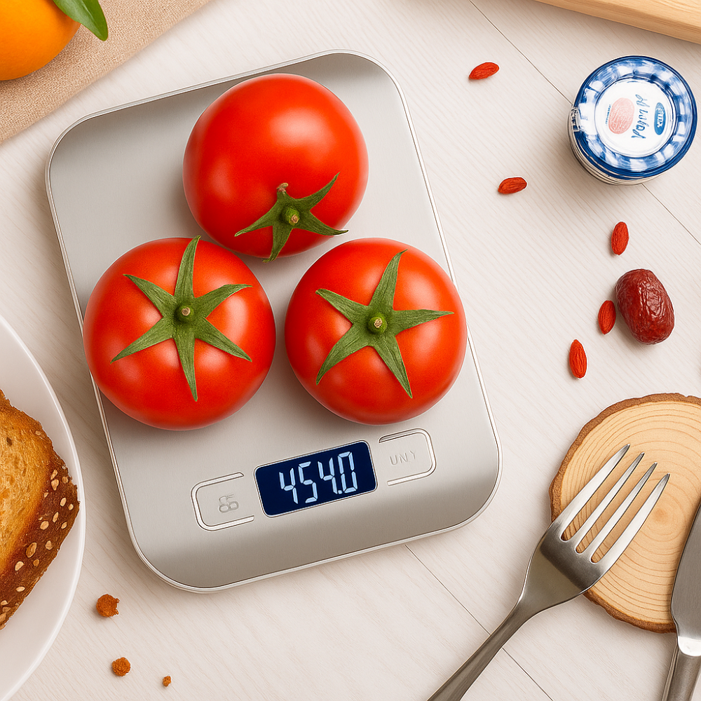 Precisão Profissional de 1g: Perfeita para medir desde ingredientes leves, como fermento, até porções maiores com total exatidão. Ideal para receitas sensíveis, suplementos e controle dietético.