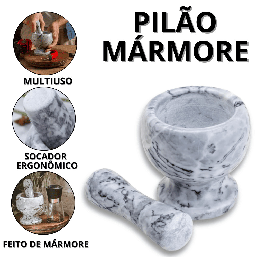 Escolha ideal para transformar sua cozinha, de forma simples e eficiente, seja para o uso profissional ou amador, com o pilão, explore moer diferentes ervas, grãos ou temperos facilmente, além do seu design em mármore